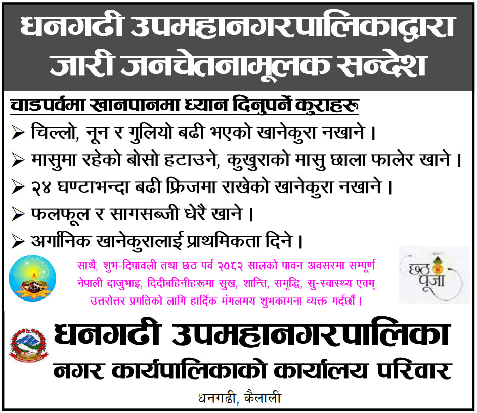पहुरा समाचारदाताधनगढी, १४ कार्तिक । अनौपचारिक क्षेत्र सेवा केन्द्र (इन्सेक) सुदूरपश्चिम प्रदेश कार्यालय, धनगढीके आयोजनामे प्रदेश स्तरीय मानव अधिकार रक्षक सञ्जालके छलफल विफेक रोज धनगढीमे सम्पन्न हुइल बा । इन्सेक सुदूरपश्चिम प्रदेश संयोजक खडकराज जोशीसे जेनजी आन्दोलनके कारण सृजना हुइल देशमे उत्पन्न विषम् परिस्थितिमे मानव अधिकार रक्षकहुकनहे काम कैना कार्यक्षेत्रमे टमान समस्या ओ चुनौतीके सामना […]