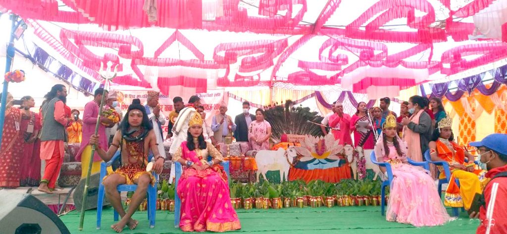 चैत १७ गतेसम आयोजना हुइना धार्मिक ज्ञान महायज्ञमे प्रमुख वाचक अन्तराष्ट्रिय भागवत भूषण वाचक शिरोमणी आचार्य नारायण शरण ज्यू पूज्य सञ्जेल जी महाराजसे करटी रहल बटै ।