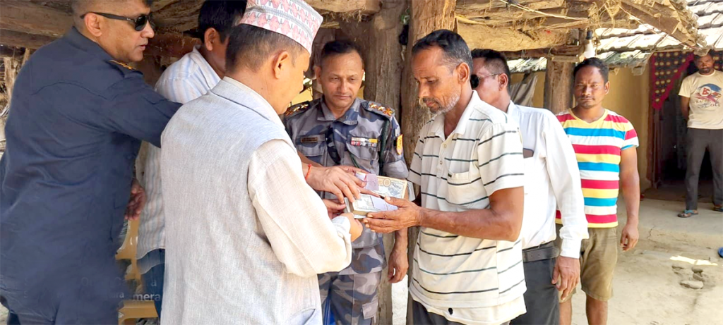 कैलालीके प्रमुख जिल्ला अधिकारी किरन थापा मृतकके घरमे पुगके नगद हस्तान्तरण करल बटै । कैलारी गाउँपालिकाके अध्यक्ष राजसमझ चौधरी, प्रवक्ता तथा वडा नम्बर ७ के अध्यक्ष दिपेन्द्रबहादुर बम, सशस्त्र प्रहरी उपरीक्षक धनबहादुर सिंह, कैलालीके प्रहरी प्रमुख प्रहरी उपरीक्षक सोमेन्द्र सिंह राठौर, नेपाली काँग्रेस कैलारीके सभापति कृष्णप्रसाद चौधरीके सहभागितामे मृतकके गोसिया परनुराम डगौंराहे नगद हस्तान्तरण कैगिल बा ।