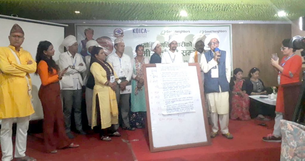 नेपालके संविधानसे आत्मसाथ करल विभेदरहित, समतामूलक, न्यायपूर्ण समाज एवं समृद्वराष्ट्र निर्माणके लाग मौलिक हकके प्रभावकारी कार्यान्वयन करेपरना कना मान्यताहे आत्मसात करटि संविधान, कानून तथा लैंगिक न्यायके मान्य सिद्धान्त अनुरुप समाजमे विद्यमान विभेद ओ उत्पीडनके अन्त्य करेक लाग घोषणापत्र पारित करल बा ।