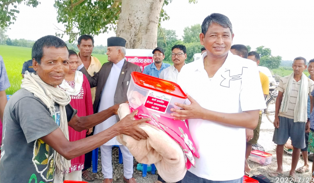 कैलाली जिल्लाके कैलारी गाउँपालिका वडा–३ शिवरत्नपुरके बाढ प्रभावित ४० घरपरिवारहे खाद्यन्न तथा लत्ताकपरा वितरण करल बा ।