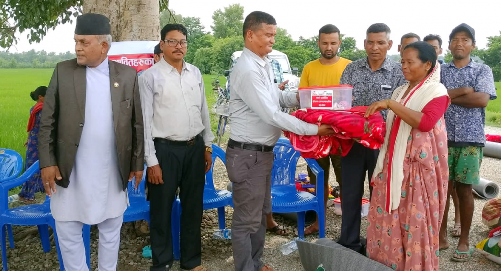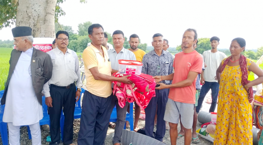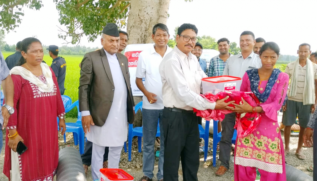 शिवरत्नपुरके बाढ पीडितहे खाद्यन्न तथा लत्ताकपरा वितरण