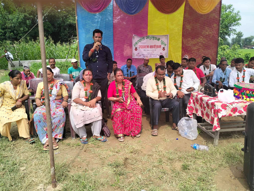 सुदूरपश्चिम प्रदेशके प्रदेशसभा सदस्य विरमान चौधरीके प्रमुख आतिथ्य ओ कैलारी गाउँपालिका उपाध्यक्ष भगवतीकुमारी चौधरीके विशिष्ट अतिथि लक्कड–रामपुर एकलघरुवा जोरना कटैनी लडियामे बनल उ झोलुङे पुलके उदघाटन हुइल हो ।