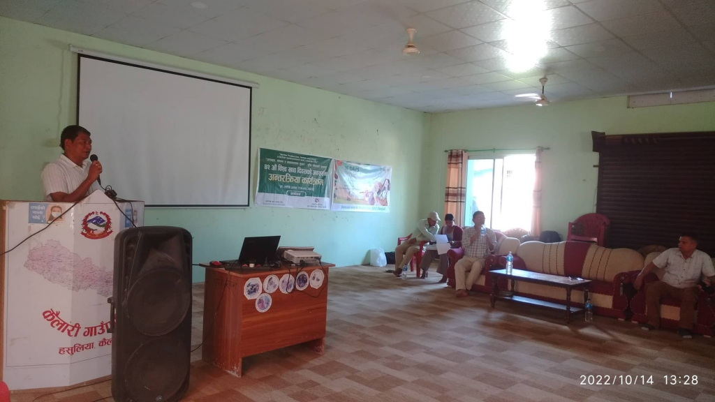 ४२ औं विश्व खाद्य दिवसके अवसरमे शुकके रोज हसुलियामे कैलारी गाउँपालिका कृषि शाखा ओ सामाजिक सेवा अध्ययन केन्द्रके आयोजनामे हुइल एक कार्यक्रममे बोल्टी उहाँ उ बाट बत्वाइल हुइट ।