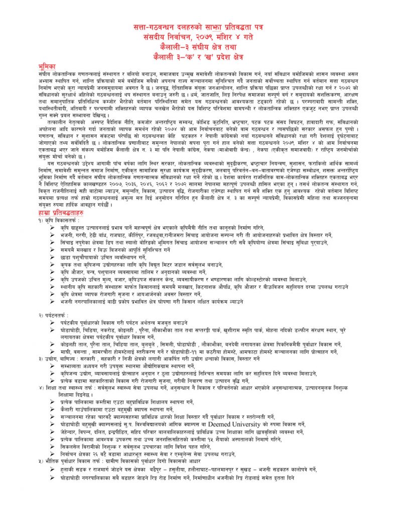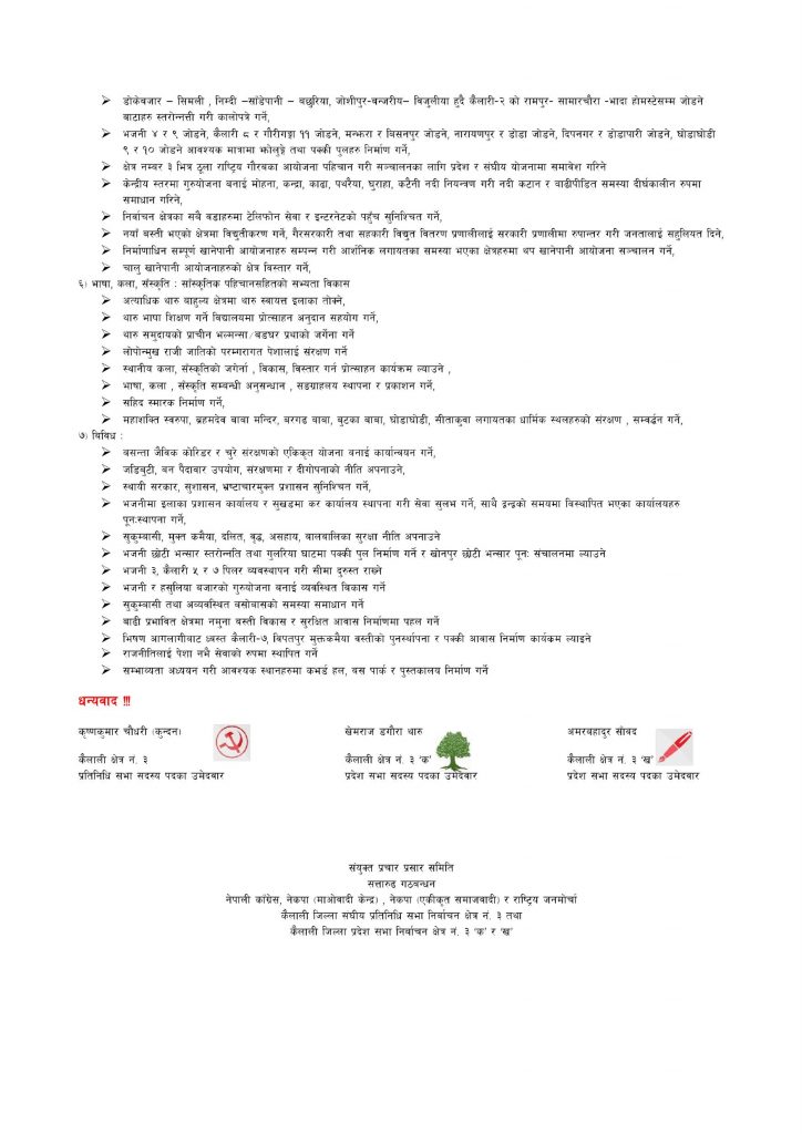 कैलाली–३ सत्तारुढ–गठबन्धनके उम्मेदवारके साझा प्रतिवद्धता सार्वजनिक