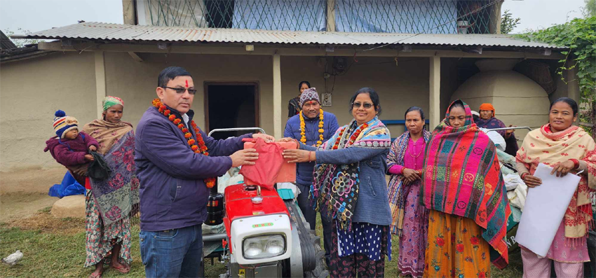 कैलारी गाउँपालिका कृषि शाखासे आर्थिक बर्ष २०८०÷०८१ रैथाने थारु आलु ओ तोरी प्रवद्र्धन कार्यक्रम अन्र्तगत दुई लाख ५० हजार अनुदान ओ समुहकेफे दुई लाख ५० हजार लगानी करके दुई ठो पावरटिलर ओ दुई ठो पानी मोटर खरिद कैके समुहहे हस्तान्तरण बा ।