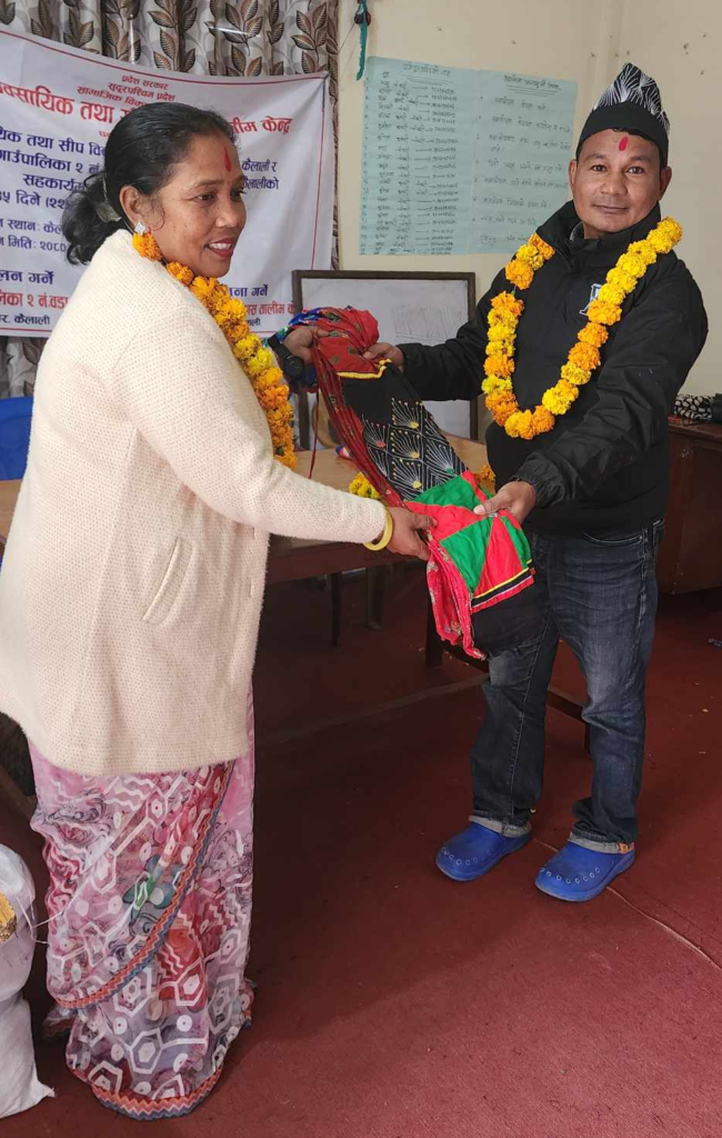 निशुल्क लेंहगा सिल्ना तालिममे २० जाने थारु समुदायके महिलाहुकनके सहभागिता रहल रहे । तालिमके प्रशिक्षण ओमकुमारी चौधरी रहल रही ।