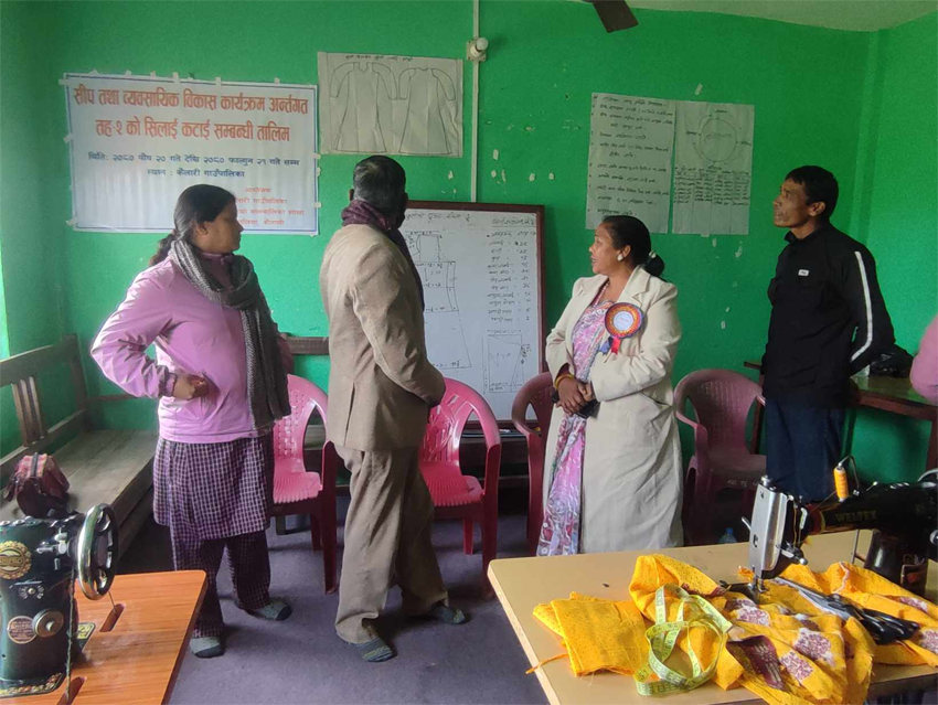 हसुलिया, २४ पुस । कैलारी गाउँपालिका वडा नम्बर ५ मे सीप तथा व्यावसायिक विकास कार्यक्रम अन्र्तगत तह–२ के सिलाई कटाई सम्बन्धी तालिम सुरु हुइल बा ।