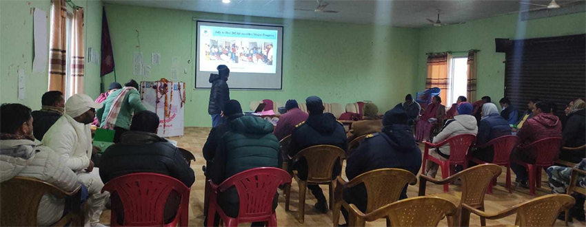 उ कार्यक्रमहे व्यवस्थित तथा प्रभावकारी बनाइक लाग सामाजिक विकास समिति संयोजक सन्तराम चौधरीके संयोजकत्वमे समिति गठन कैगिल बा । उ समितिके सदस्यमे आर्थिक विकास समिति संयोजक विष्णु प्रसाद चौधरी, कृषि शाखा प्रमुख मैया चौधरी सदस्य सचिव, सहास नेपालके प्रतिनिधि सदस्य रहल बटै । कार्यक्रमहे सहयोग तथा समन्वयके लाग अन्य संस्थाहुकनहे अनुरोध कैना निर्णय हुइल सहास नेपालके परियोजना अधिकृत नरेन्द्र चौधरी बटैलै ।
