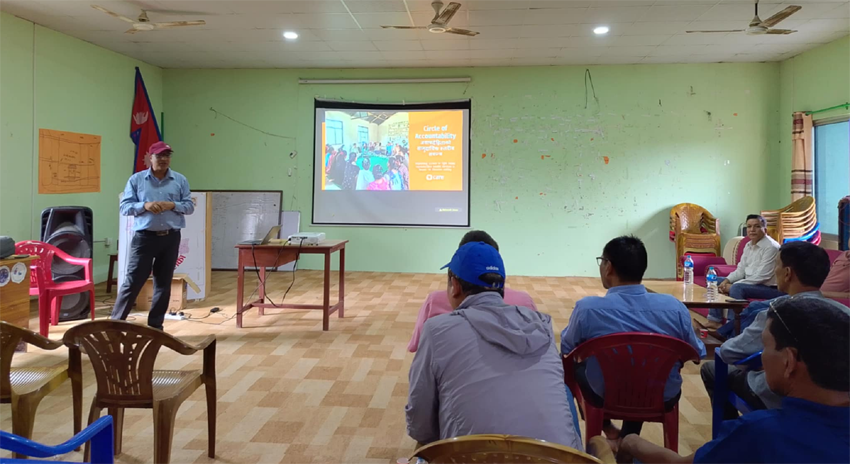 केयर नेपालके कालिदास जोशी विपदमा अधिकारमुखी गुणस्तरीय प्रजनन स्वास्थ्य सेवामा पहुँच सुदृढीकरण परियोजनासे संचालन कैना गतिविधिबारे प्रस्तुतीकरण करल रहिट । विपदके समयमे प्रजनन स्वास्थ्य सम्बन्धी गुनासोक संकलन ओ सम्बोधनके लाग सहभागितामुलक तथा अधिकारमुखी सामाजिक जवाफडेहिता संयन्त्र सार्वजनिक स्वास्थ्य प्रणालीमे अवलम्बन हुइना कहलै ।