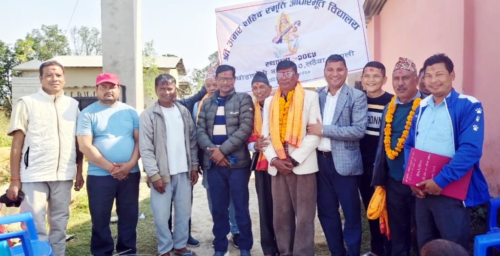 कैलाली जिल्ला घोडाघोडी नगरपालिका वडा नम्बर १० लठैयास्थित अमर शहिद स्मृति आधारभूत विद्यालयमे मन्दिरके शिलान्यास हुइल बा ।