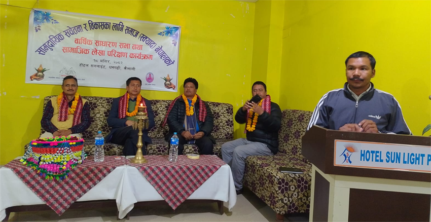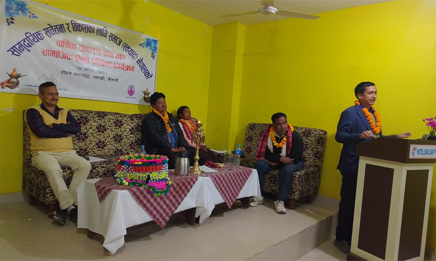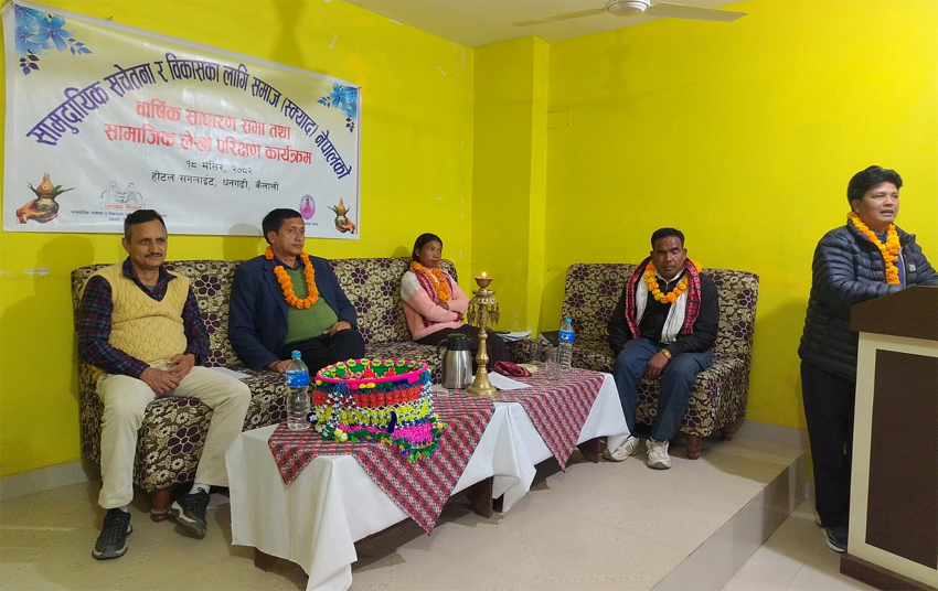 सामुदायिक सचेतना र विकासका लागि समाज (स्क्याद) नेपाल धनगढी कैलालीके वार्षिक साधारण सभा तथा लेखा परिक्षण सभाके प्रमुख अतिति रहल उहाँ उ बाट बत्वाइल रहिट । यहाँ डगरघाट, भौतिक संरचना, पुल पुलेसा केल्ह प्रदेश सरकारके गौरवके योजना बनठ, उहाँ कहलै, कमैया मुक्ती हुइलक अटरा ढेर बरस होसेकल । ढेर मुक्त कमैयाके प्ुनस्र्थापना होसेकल आब ढेर नैहुइट । एक दुई बरस लागे सेकठ मने प्रदेश सरकार गौरवके योजना बनाके यकर दिगो समाधान कैना जरुरी बा ।