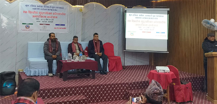अन्तरक्रिया कार्यक्रमके प्रमुख अतिथि सुदूरपश्चिम प्रदेश सरकारके भुमि व्यवस्था, कृषि सहकारी मन्त्री विरबहादुर थापा प्रदेश सरकार मुक्त हलिया, कमैया कमलरी पुनस्र्थापना तथा दिगो जिविकोपार्जनके लाग लागल बटैलै । उहाँ प्रत्येक, जिल्ला, स्थानीयतहमे फरक फरक कार्यक्रम लागु करल बटैलै । प्रदेश सरकार विगतमे का करल का नैकरल उहीहे छोरके आब नयाँ शिरासे आघे बह्रल ओरसे मुक्त हलिया, कमैया कमलरी पुनस्र्थापनाके एक चो के लाग हुइलेसेफे भारी बजेट विनियोजन करके आघे बह्रना तयार रहल बटैलै ।