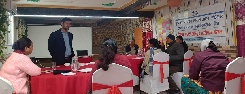 धनगढी, २८ पुस । सुदूरपश्चिम प्रदेश स्तरीय मानव अधिकार रक्षक संजालके पदाधिकारीनहे दुई दिने क्षमता अभिवृद्धि तालिम डेहल बा ।