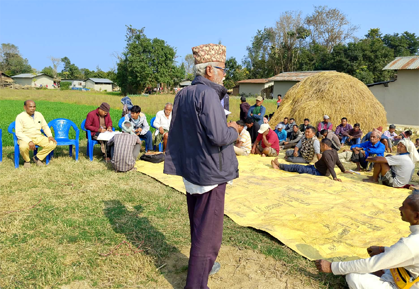 गाउँक निर्णयहे गाउँ समाजसे सर्वहमतिसे पारित करल रहिट । गाउँ समाजके खोज्नीबोज्नीसे एक बरसके लाग निर्वाचित हुइल लौव कार्यसमितिहे सल्लाहकार समितिके सदस्य तेजराम चौधरी शुभकामना तथा बधाई ज्ञापन करल रहिट । कलेसे भल्मन्सा रामबहादुर कठरिया दुसरा कार्यकालके फेरसे आपनहे सर्वसहमतसे भल्मन्सा बन्ना मौका डेहलमे गाउँसमाजहे धन्यावाद डेटी आगामी दिनमे गाउँ समाज भावननाहे समेटके सक्कु जानेक सल्लाहअनुसार आघे बह्रना प्रतिवद्धता जनैलै ।