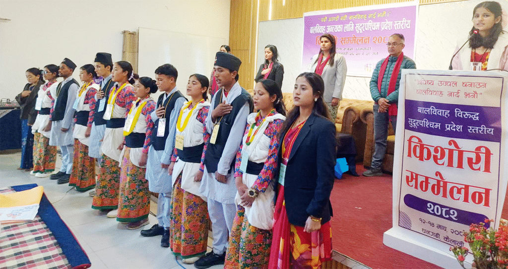 सुदूरपश्चिम प्रदेश स्तरीय बाल विवाह विरुद्धके किशोरी सम्मेलन धनगढीमे सुरु हुइल बा ।