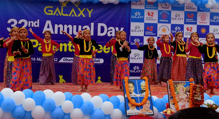 धनगढी, १६ माघ । कैलालीके धनगढी उपमहानगरपालिका वडा नम्बर ५ हसनपुरमे रहल ग्यालेक्सी माविके ३२औं वार्षिकोत्सव तथा अभिभावक दिवस सम्पन्न हुइल बा ।
